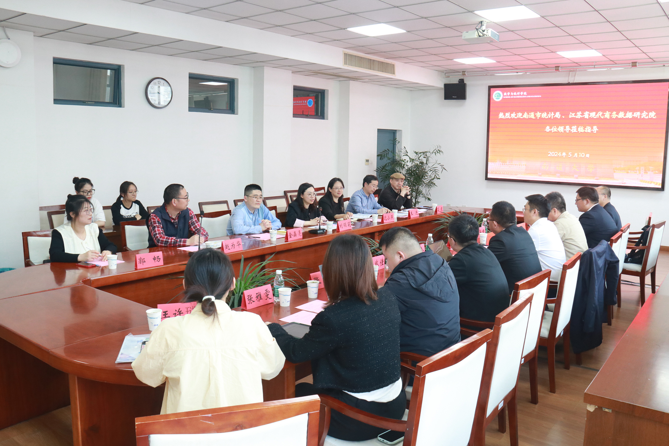 5月10日下午,南通市统计局总统计师王建、江苏省现代商务数据研究院董事长王金合一行来校开展产学研合作洽谈。william威廉中文官网、江苏省统计科学研究基地(william威廉中文官网)携手商公司、信息科学技术公司有关负责同志接待了来宾。