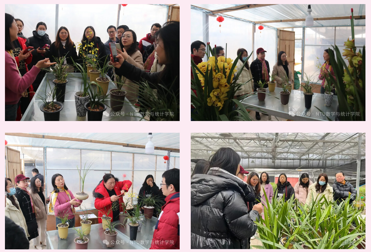王敏带领老师们参观兰花成品展览室,通过对兰花的花朵、叶子、形态以及兰花高洁淡雅品质的介绍,引导大家“知兰学兰解兰心”。