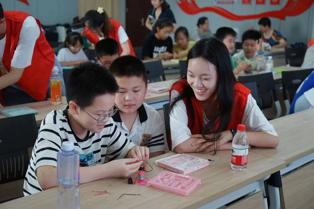 今年暑假,“乐学课堂”志愿服务团首次走进临江社区开展“夏日智慧播种计划”安全主题活动。本次活动由安全知识讲解和动手实践两部分组成。志愿者们从暑期防溺水、交通安全、用电安全及食品安全四个板块进行暑期安全科普,告诉孩子们:“水是温和的,也是无情的。”“不跟陌生人走。”通过内容丰富的PPT和绘声绘色的讲解让孩子们了解到身边会出现的危险,增强安全防范意识。在与孩子们的互动环节中,教会大家应该怎样面对突发情况,增强应对能力。志愿者们带领小朋友们做电灯泡与风扇实验,体验量变的理性之美,在小朋友的心中种下追求科学的种子。