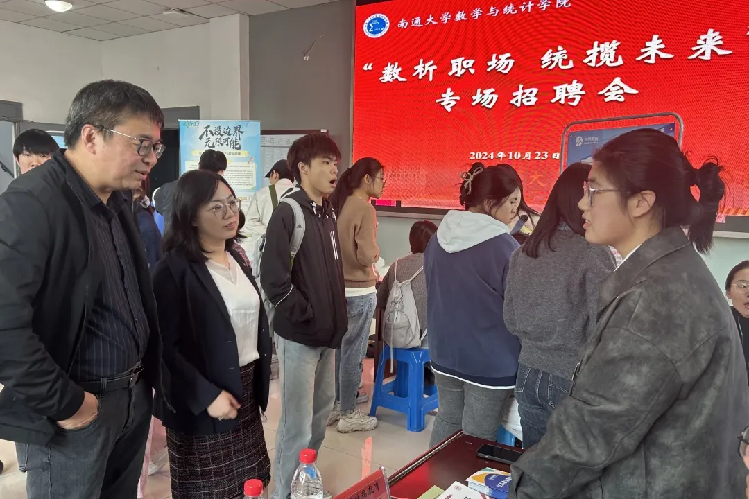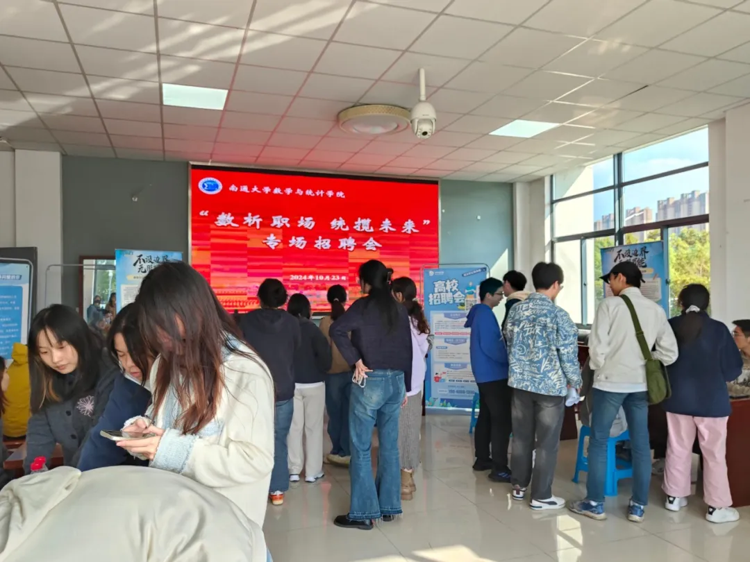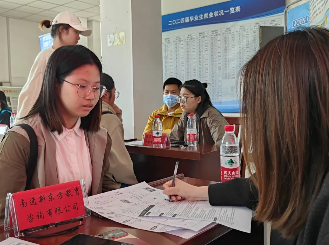 本次校园招聘会有新东方、江苏欣瑞教育咨询有限公司、南通市崇川区博华教育培训中心等数家知名企业到场参会,主要招聘数学、教育学、应用统计等多个方向的人才。毕业生们手持精心准备的简历,自信满满地穿梭于各企业展位之间,积极与招聘人员交流,了解用人单位的需求和岗位信息。招聘会现场气氛热烈,秩序井然。