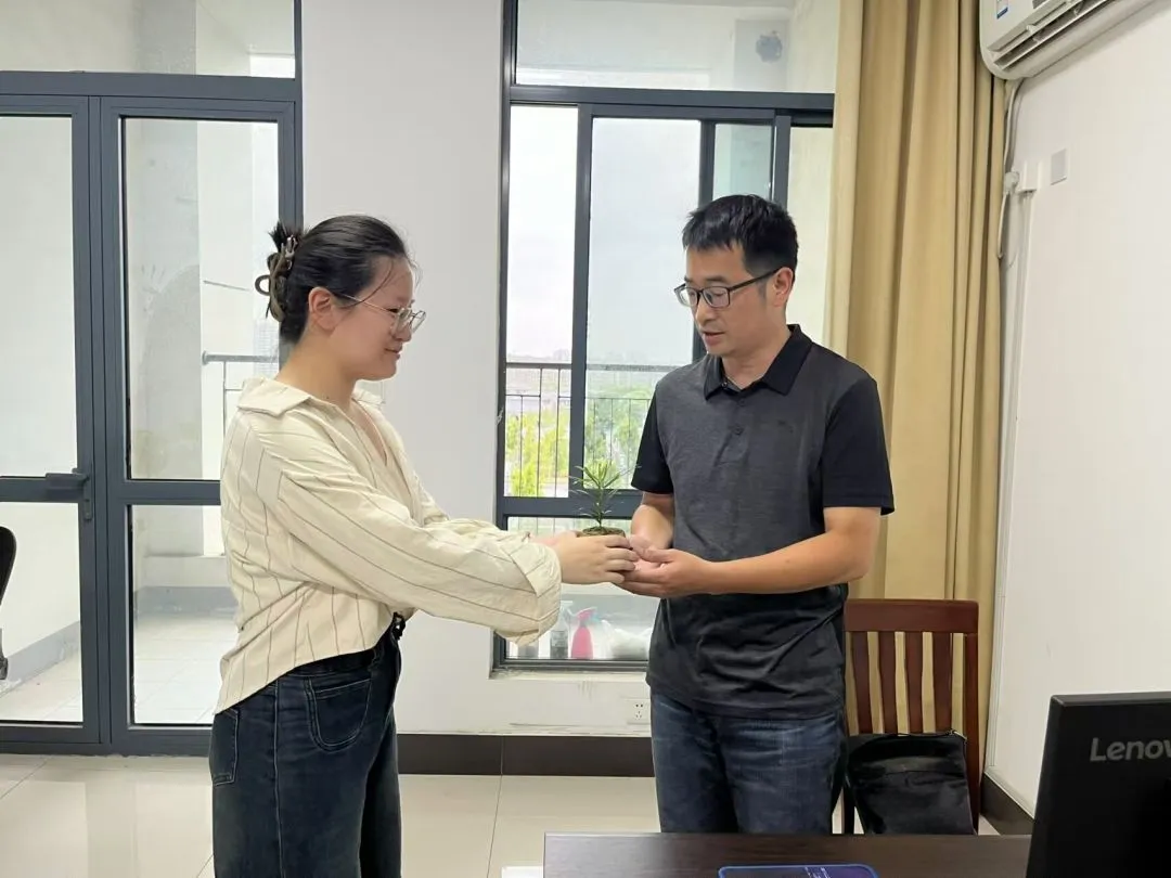 在赠送仪式上,员工们亲手将罗汉松送到每一位老师的手中,并表达了由衷的感谢与祝福。