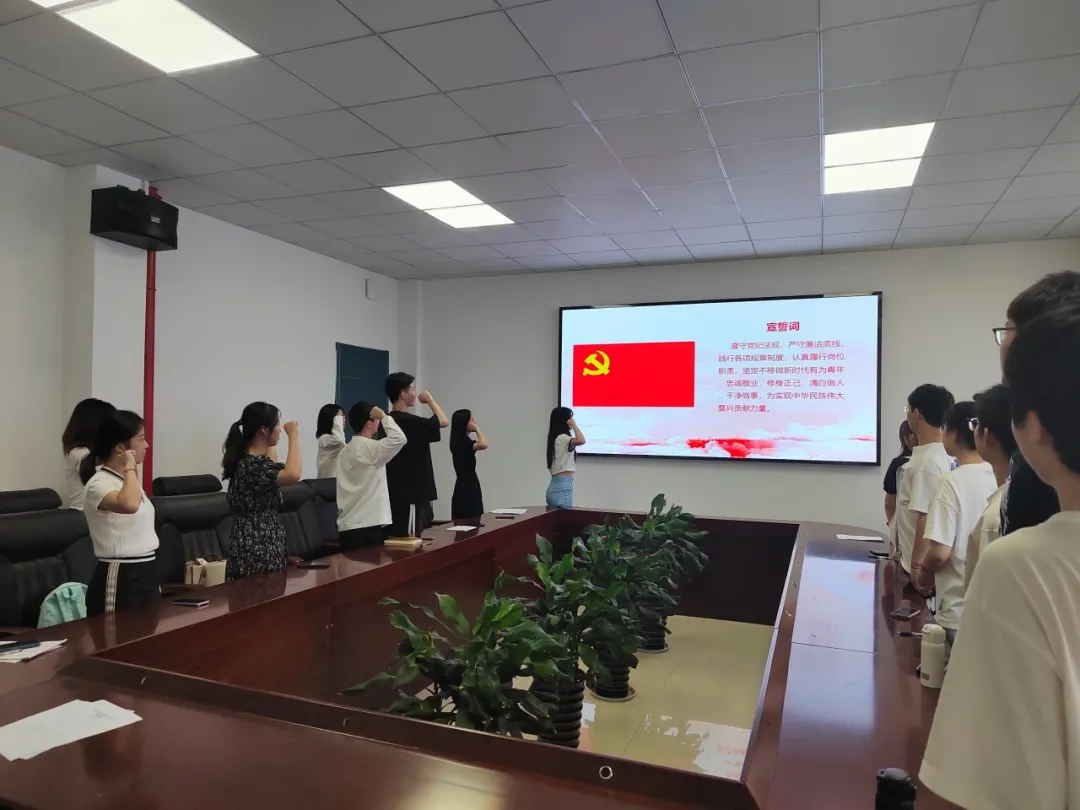 全体党员面对党旗庄严宣誓:“遵守党纪法规,严守廉洁底线,践行各项规章制度,认真履行岗位职责,坚定不移做新时代有为青年,忠诚敬业,修身正己,清白做人,干净做事,为实现中华民族伟大复兴贡献力量。”宣誓仪式强化了每位党员内心深处对党和人民事业的高度责任感及使命感。