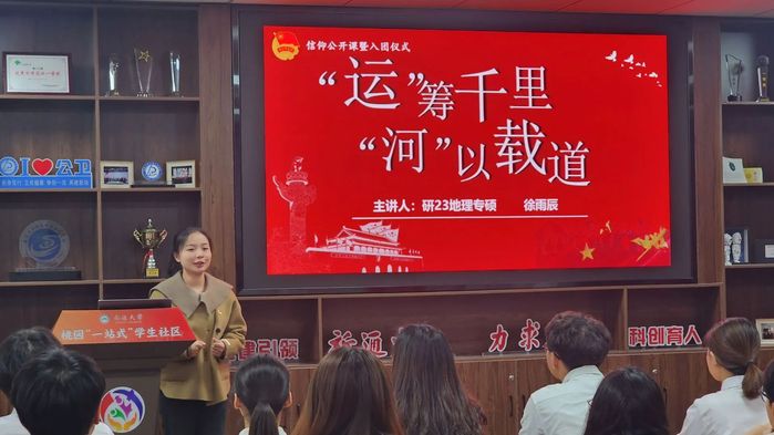 研23地理专硕徐雨辰详细介绍了中国大运河文化,用亲身经历为同学们阐释了“大运河文化不仅属于江苏,属于全国,也属于全世界”。并提倡当代青年更应积极弘扬中国优秀传统文化,发出当代江苏青年的声音。