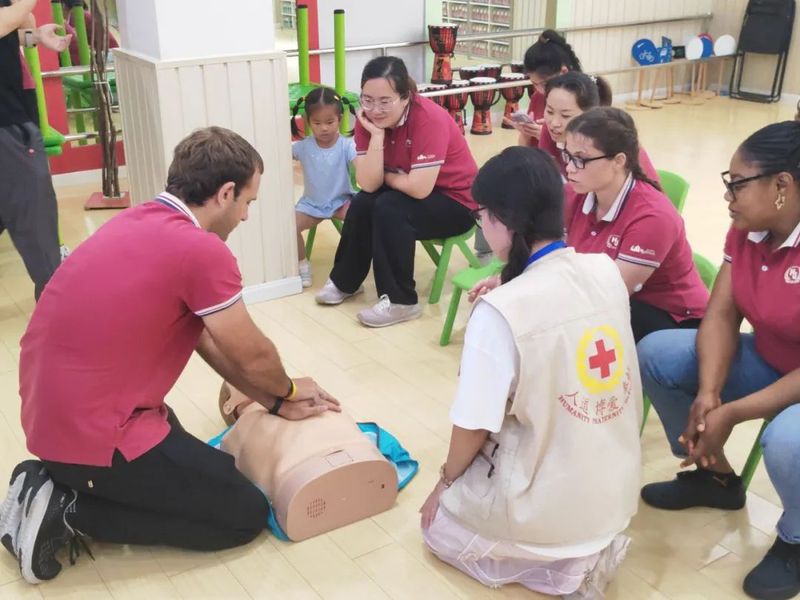 志愿者用假人练习插管吸氧,理论研习与实践操作双轨并行,以便于更熟练地掌握救生知识,在危急关头能够迅速开展救援,有效减轻伤害,守护宝贵生命。照片温暖又充满着理性秩序,传递着生命至上的崇高信仰,展现红十字精神的温暖力量。