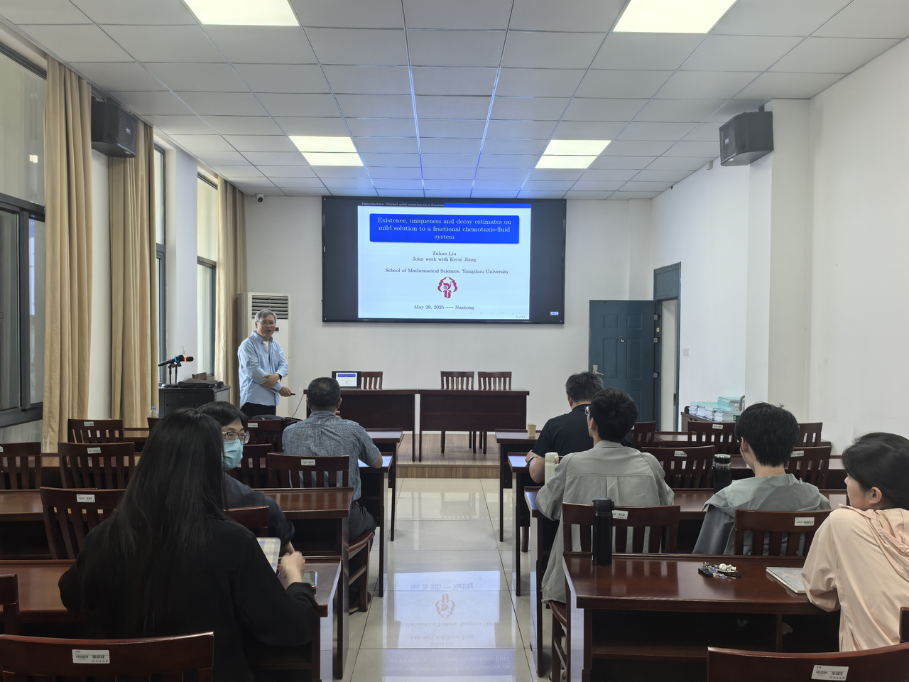 郭真华教授聚焦于密度依赖粘性系数的可压缩流问题,针对球对称数据情形,阐述了等熵可压缩 Navier-Stokes 方程全局强解的存在性。通过构造特殊形式的解析解,结合 BD 熵估计、高阶可积性估计等方法,证明了在特定粘性系数形式和初始条件下,系统存在不出现真空态的全局强解,并给出了密度和速度的正则性及上下界估计,为理解高维可压缩流中真空态的形成问题提供了正面案例和理论依据。