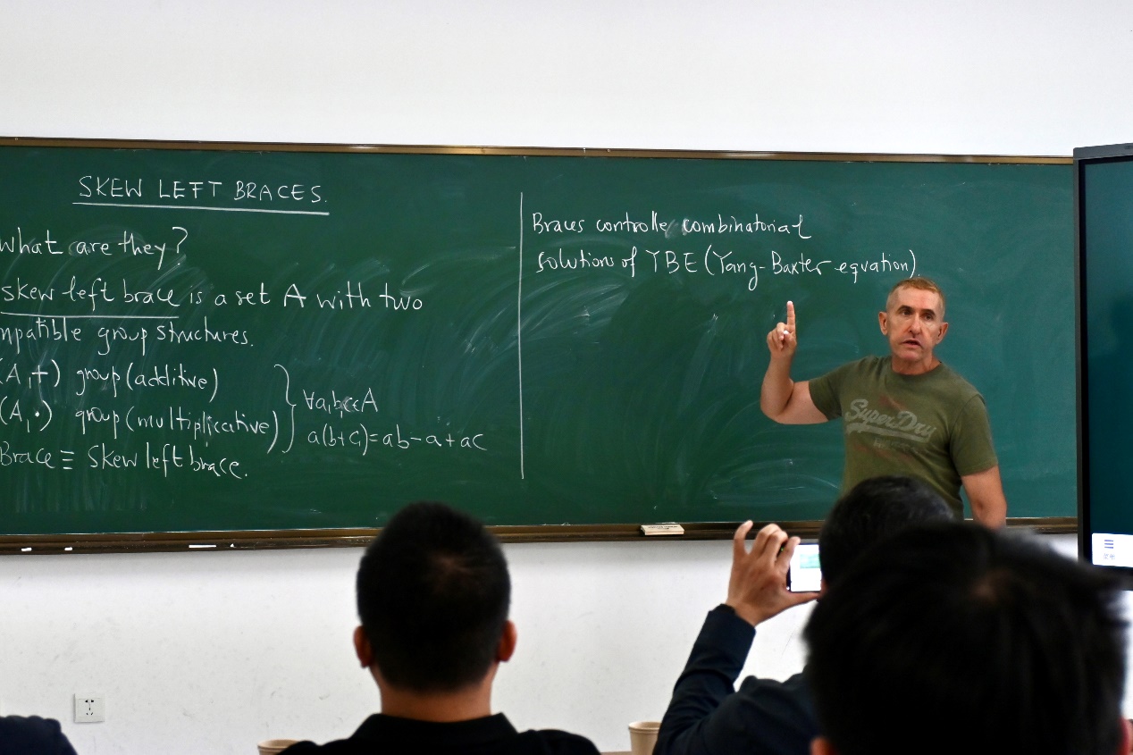 Adolfo Ballester-Bolinches教授以“SKEW LEFT BRACES”为主题,与师生交流了通过斜左大括号的方式来给出Yang-Baxter方程的集合论解,已经著名的ITO定理。