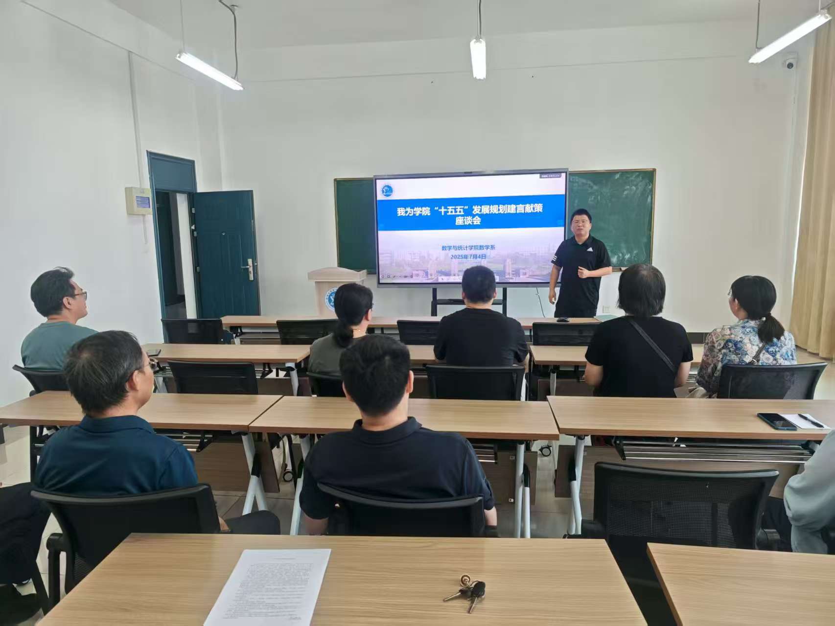 王明华以《高等数学》中的“极限思想”为切入点,开展“课程思政手拉手”专题报告。通过“微积分中的辩证思维”“统计模型中的家国情怀”等鲜活案例,系统阐释了数学课程与思政教育的有机融合路径。报告会上,教师们围绕“如何挖掘数学史中的思政元素”“大学数学教学中的诚信教育”等议题开展热烈交流研讨。