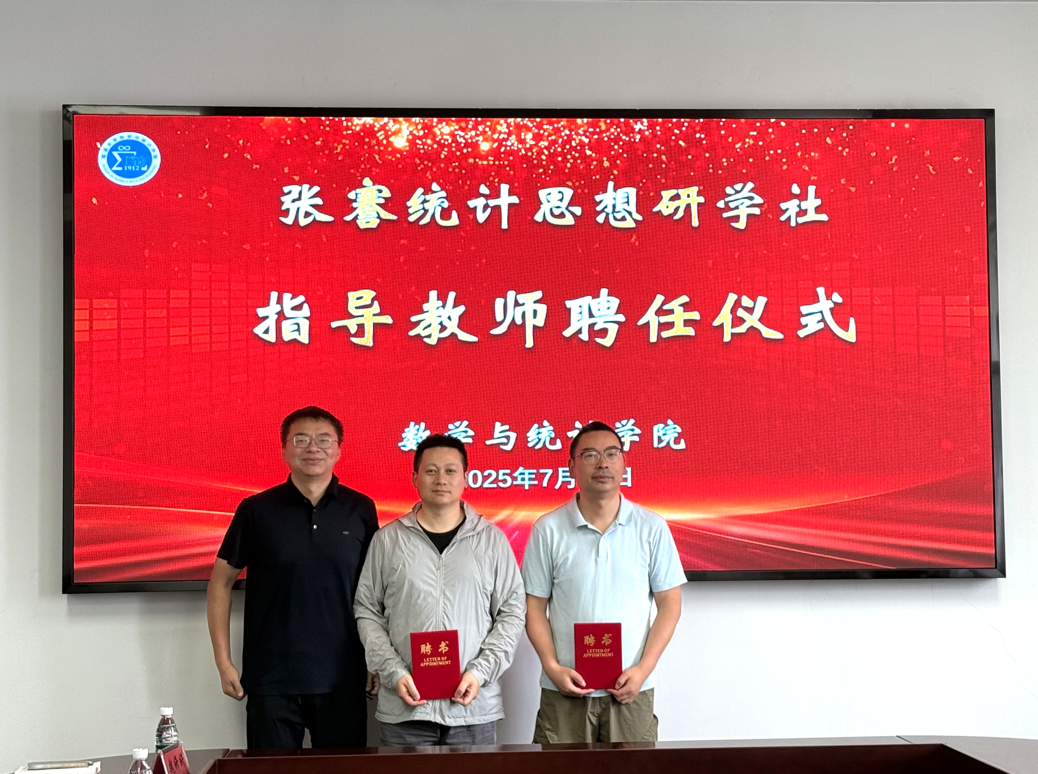 会上,刘丽莉为受聘校外指导教师葛鸣珏颁发聘书,王林峰为受聘校内导师赵为华教授、郭晓君教授颁发聘书并合影留念。赵为华教授表示将积极参与社团建设,通过专题讲座、课题指导、实践项目等多种形式,引导社员们“学思践悟”,将先贤智慧转化为解决当代问题的能力,培养兼具家国情怀与扎实技能的统计后备力量。研学社社长卢星羽表示,全体社员将以导师聘任为契机,珍惜宝贵的学习资源,以更加饱满的热情投入社团活动。