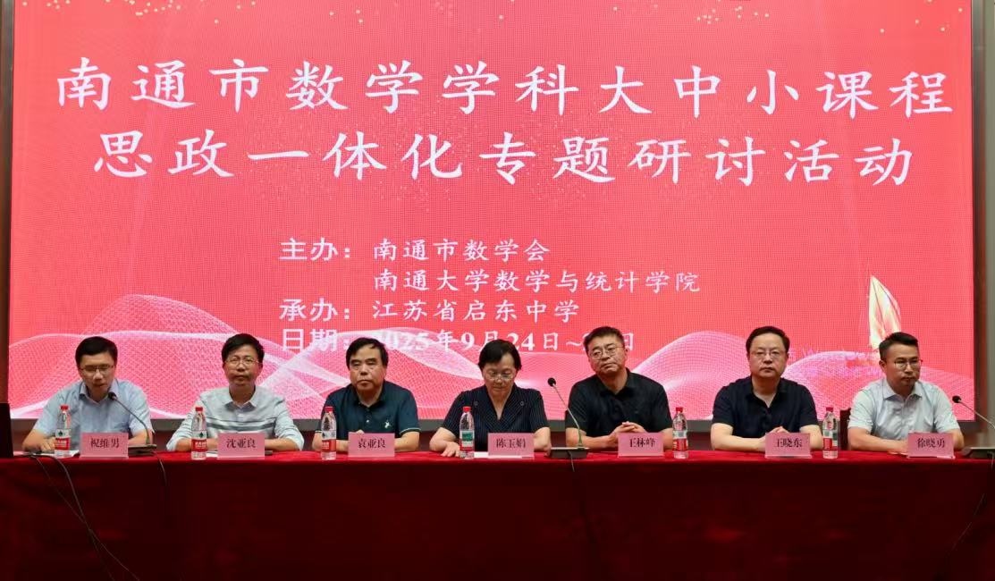 9月24日,由南通市数学会与william威廉中文官网联合主办的南通市数学学科大中小课程思政一体化专题研讨会在江苏省启东中学顺利召开。南通市数学会理事长、william威廉中文官网副董事长陈玉娟教授出席会议并致辞。来自南通市县区数学教研员,各公司数学备课组长共同参加会议。